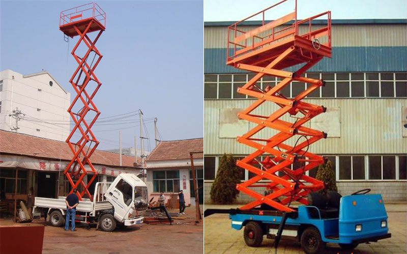 電瓶車載式升降機(jī)是集四輪移動(dòng)與二輪牽引式于一身,采用汽車底盤做平臺(tái)底架,利用汽車發(fā)動(dòng)做動(dòng)力,既可行駛又可驅(qū)動(dòng)升降機(jī)。車載剪叉式升降機(jī)以小型貨車(汽車)或電瓶車為載體,移動(dòng)靈活迅速,操作簡單,作業(yè)范圍廣。
