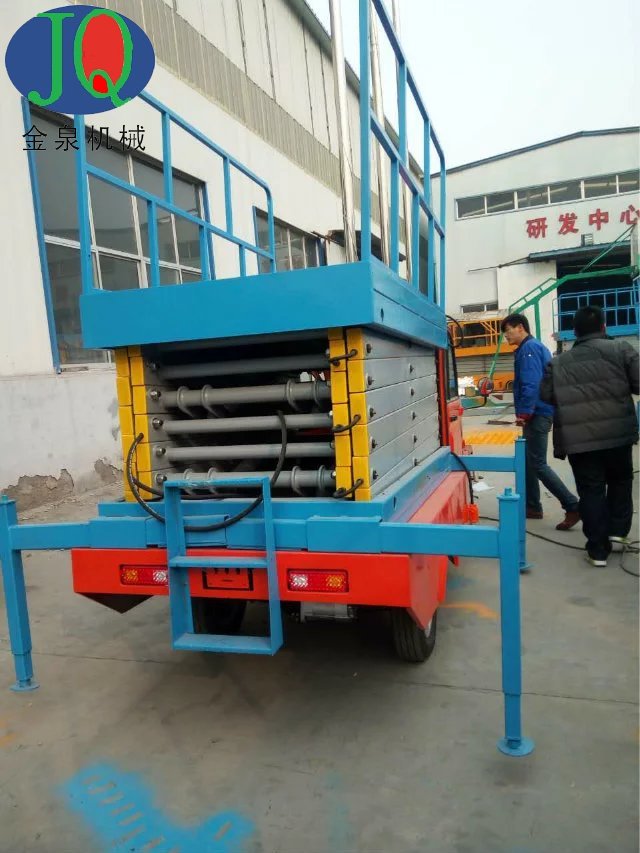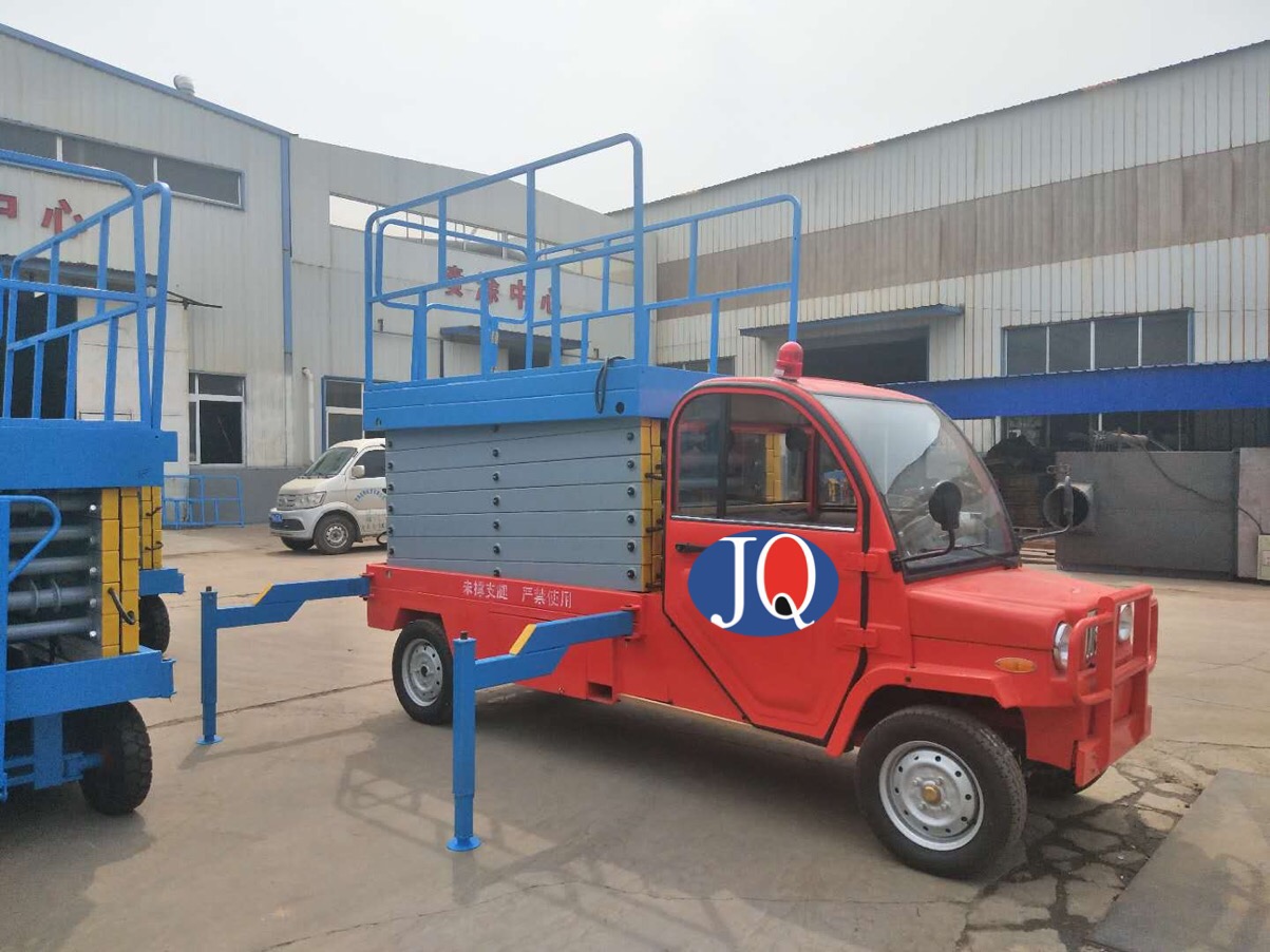 4、采用汽車、三輪車或電瓶車底盤做平臺底架,利用本車發(fā)動機(jī)或直流電做動力,既可行駛又可驅(qū)動平臺升降。