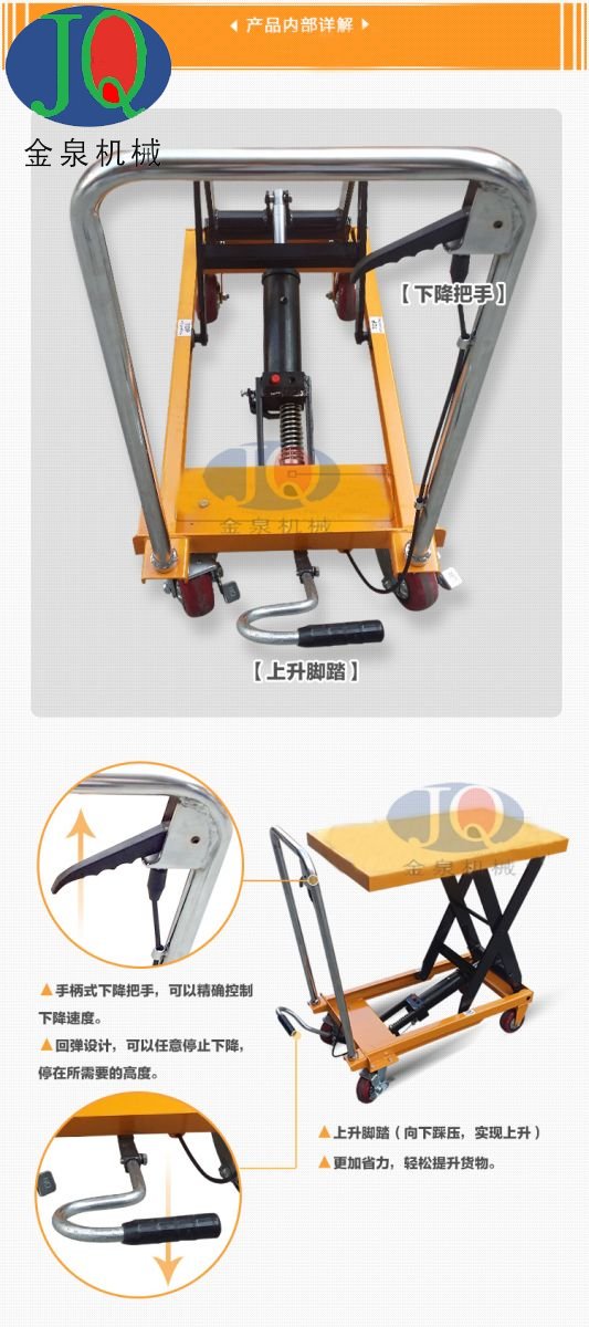 產(chǎn)品特點(diǎn)?。?br /> 1、升降平穩(wěn),操作輕便。 2、運(yùn)轉(zhuǎn)靈活,使用安全。 3、純?nèi)斯げ僮鳎徊缮鸹ê碗姶艌觥 ?span lang="EN-US" style="margin: 0px; padding: 0px; list-style: none;">4、手動(dòng)液壓泵動(dòng)力 5、手動(dòng)/電動(dòng)兩用動(dòng)力