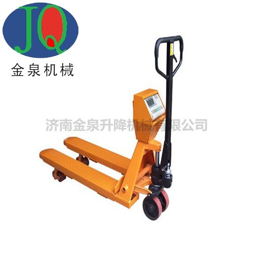 帶秤的搬運車是指在小型手動液壓升降搬運車基礎上增加高精度稱重傳感器和智能化數(shù)字顯示儀表而組成的稱重系統(tǒng),電子叉車秤實現(xiàn)了貨物的搬運和稱重同步進行,每次稱重的數(shù)據(jù)可以自動顯示。具有外形尺寸小、推行輕巧、升降自如、轉彎方便、計量精確等優(yōu)點。電子叉車秤是本公司在豐富的稱重設備制造經(jīng)驗的基礎上研制而成,主要用于倉儲作業(yè)中貨物的轉移稱量、計數(shù),如鐵路、公路貨物的盤點稱量;工礦企業(yè)成品庫、半成品庫貨物出入庫稱量等等。