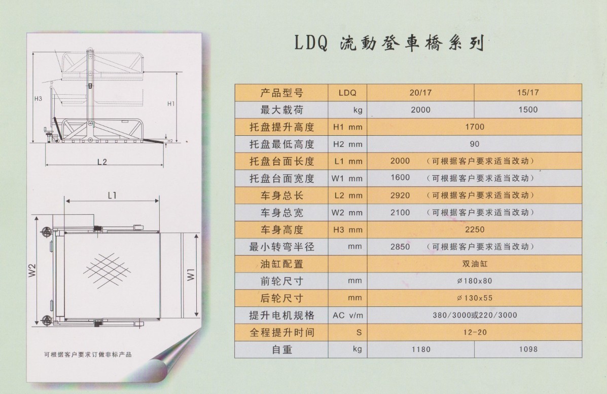 LDQ流動(dòng)式液壓登車(chē)橋是實(shí)現(xiàn)貨物快速裝卸的專(zhuān)用設(shè)備,它的自由升降可以適合任何車(chē)型就連1700mm的集裝貨柜車(chē)都可以輕松操作,配合手動(dòng)液壓搬運(yùn)車(chē)進(jìn)入車(chē)廂,即可實(shí)現(xiàn)貨物的快速裝卸。它使企業(yè)減少大量的勞力,提高工作效應(yīng),獲取更大的經(jīng)濟(jì)效益。