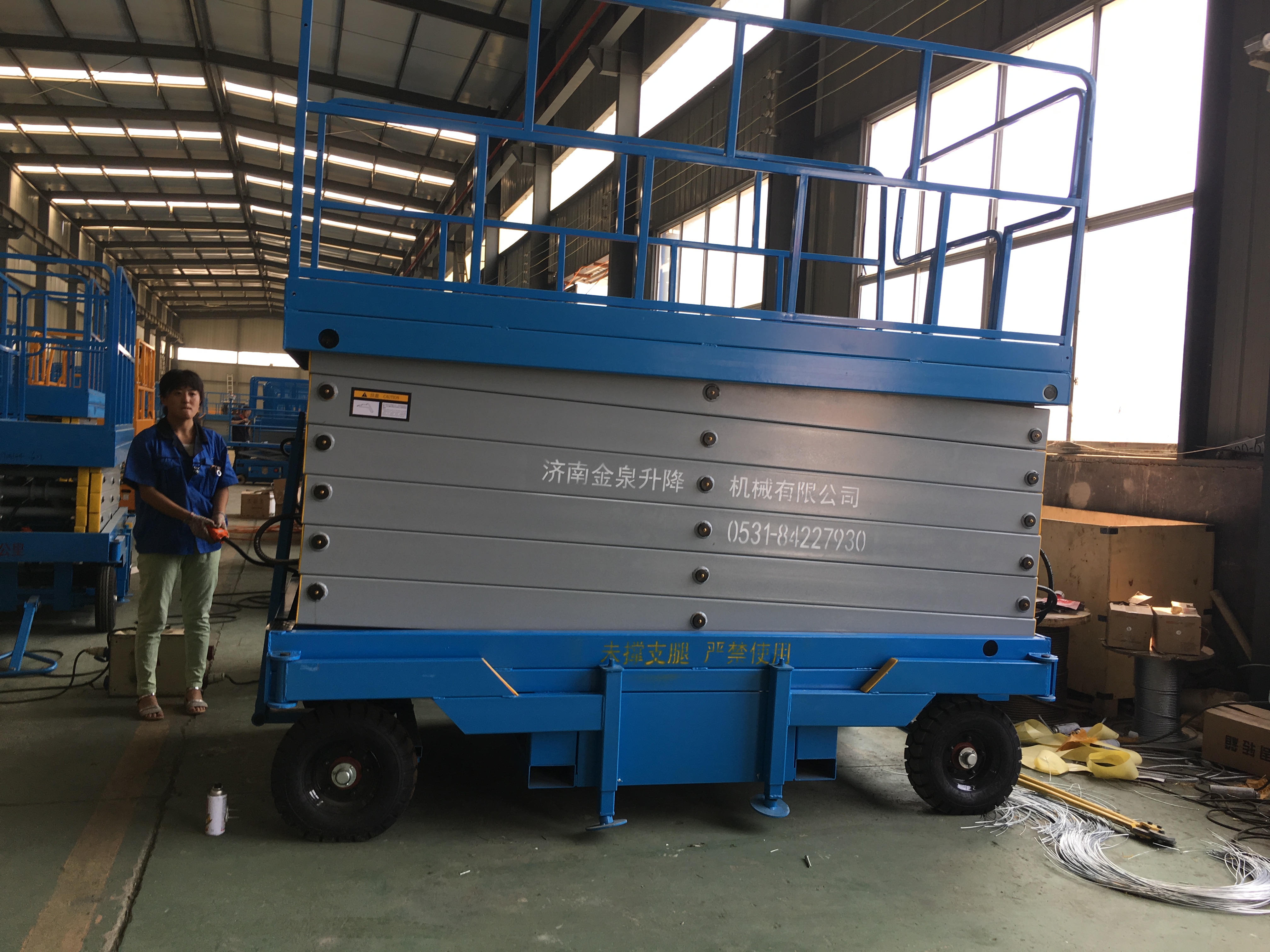 剪叉移動式移動升降機是用途廣泛的高空作業(yè)作業(yè)專用設備。它的剪叉機械結(jié)構(gòu),使升降臺起升有較高的穩(wěn)定性,寬大的作業(yè)平臺和較高的承載能力,使高空作業(yè)范圍更大、并適合多人同時作業(yè)。它使高空作業(yè)效率更高,安全更保障。 用途: 曲臂移動式能懸伸作業(yè)、跨越一定的障礙或在一處升降可進行多點作業(yè);平臺載重量大,可供兩人或多人同時作業(yè)并可搭載一定的設備;升降平臺移動性好,轉(zhuǎn)移場地方便;外型美觀,適于室內(nèi)外作業(yè)和存放。適用于車站、碼頭、商場、體育場館、小區(qū)物業(yè)、廠礦車間等大范圍作業(yè)。