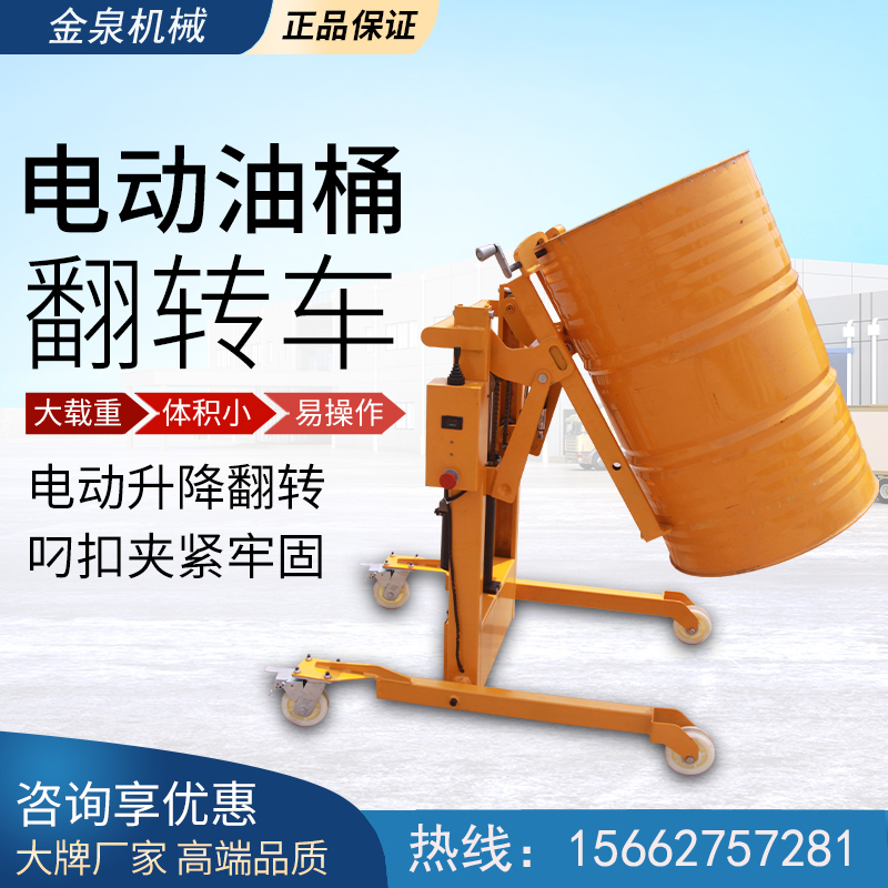 本車有電動(dòng)升降,電動(dòng)翻轉(zhuǎn)裝置,輕松實(shí)現(xiàn)油桶翻轉(zhuǎn)