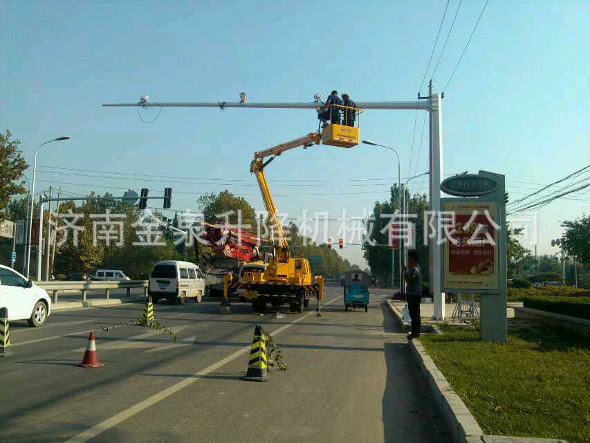車載折臂式液壓升降機(jī),路障維修首選高空作業(yè)車。濟(jì)南金泉為客戶定制的車載折臂式升降機(jī)已經(jīng)投入使用,路障維修、更換路燈等首選的高空作業(yè)車。
