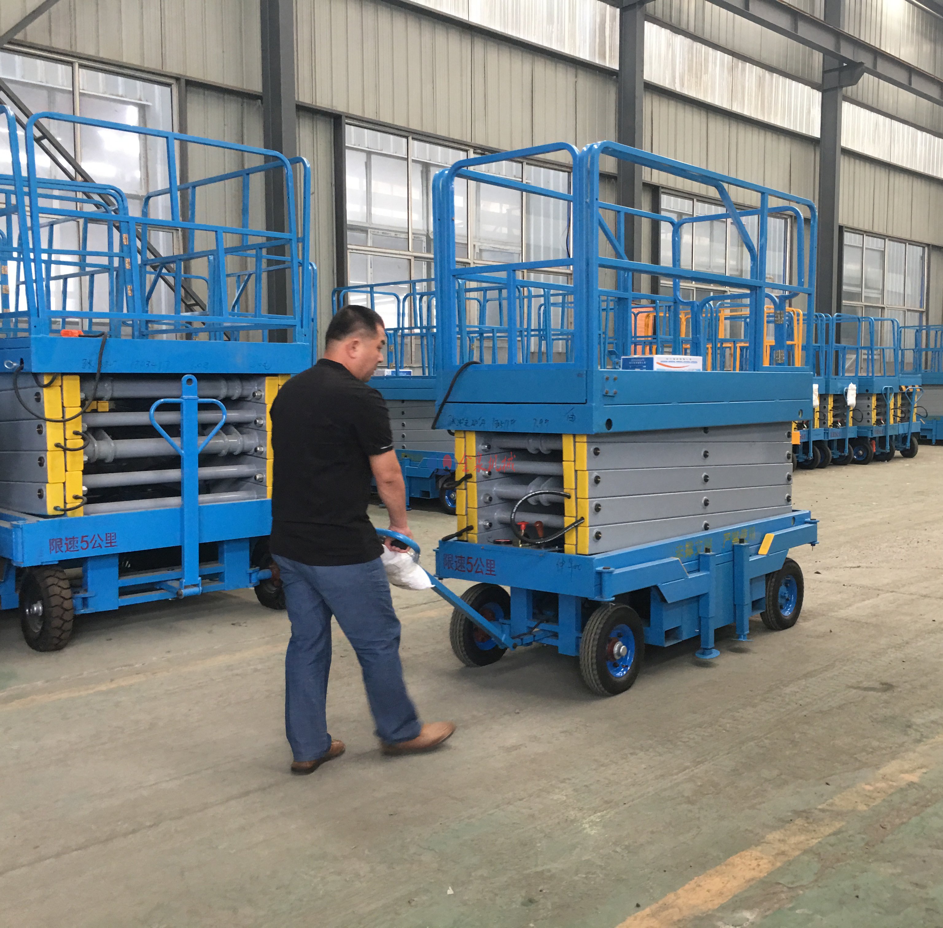 電瓶輔助行走移動升降機為自行走移動式,只需一個人掌握方向就可實現(xiàn)前進、后退、轉(zhuǎn)彎功能。具有移動靈活、升降平穩(wěn)、操作方便、載重量大、省時省力等特點。廣泛應(yīng)用于工廠、車間、碼頭、機場等,也可根據(jù)用戶需要訂做。